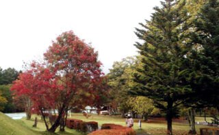 日に日に秋は深まり、モミジの葉も色とりどり。真っ赤なモミジもあれば、オレンジ色や黄色のモミジもあり、様々な色が重なり合って美しい光景を織りなしています。快晴の日には、まるやち湖から自然文化園の紅葉とくっきりと描き出された八ヶ岳の稜線を眺めることができます。