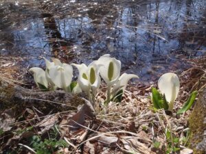 原村 PHOTO DIARY 池のほとり 2025.04.13 今日は朝から雨模様。昨日は快晴で、初夏のような陽気でしたが、春に3日の晴れなしという言葉通り、晴天も長続きしません。写真は昨日の自然文化園のようすです。 文化園ではまだ春の彩がほとんど見られませんが、池の水芭蕉だけ見頃を迎えつつあります。 カタクリの花が開くのはまだまだ先のようです。