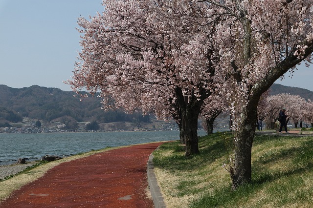 今日は朝から晴天だったので諏訪湖の桜を見に行ってきました。日中は20度を超える暖かさで、桜も満開でした。諏訪湖の周りは遊歩道とサイクリングロードが整備されて、とてもきれいになっています。一周すると16キロだそうで、歩くには少々覚悟がいりますが、自転車ならさほど辛くはなさそうです。起伏もありませんし。いつか走ってみようと思いつつ、未だに実現できていません。今年こそは挑戦してみたいものです。