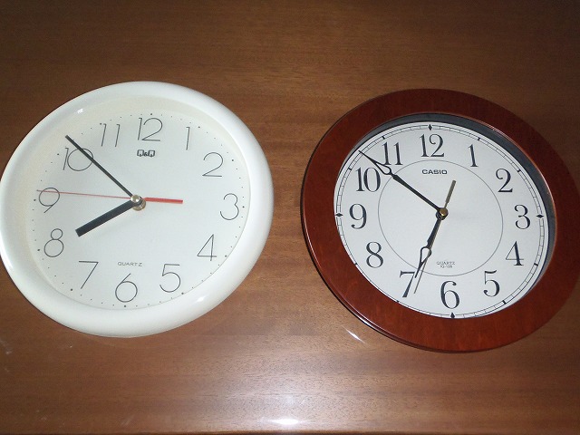 原村 PHOTO DIARY サマータイム 2025.05.31 今週から我が家ではサマータイムを実施中です。時計の針を1時間進めて生活しています。右の時計が正しい時間を示しています。左がサマータイム。今まで6時起床、12時昼食、18時30分夕食、22時就寝という生活でしたが、すべて1時間繰り上げ。今、朝は5時起床でも外は明るいですし、夕食後も1時間以上明るい状態が続くので、1日が長くなったような気がします。朝がお好きな方にはお薦めです。