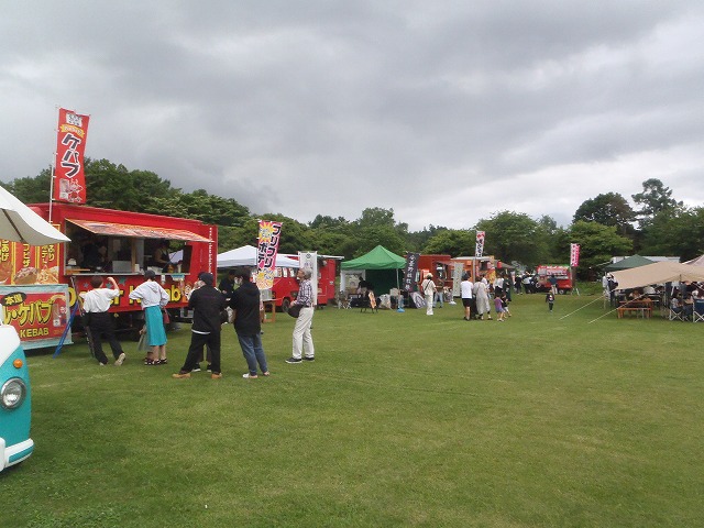 原村 PHOTO DIARY 肉だらけ祭 2025.06.16 6月14日、15日に八ヶ岳農業大学校で「肉だらけ祭」が開催されました。およそ20軒のキッチンカーやテントが出て、お肉料理を満喫できるとのこと。その他、いろいろなパフォーマンスが見られるそうです。ただ残念なことに、両日とも雨模様。昨日(15日)の午後、一時的に雨が止んだのでちょっと見てきました。この天気にも関わらず、県内や県外の車が結構たくさん来ていました。おみやげに農業大学校産の大根(100円)を1本買って帰りました。