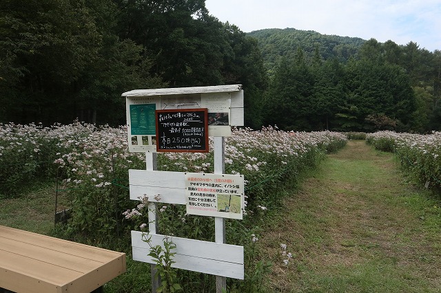 そのすぐ前にはButterfly Gardensという公園が広がっている。秋には「ルビーの里」に咲き乱れる赤蕎麦や「アサギマダラの里」に飛来するアサギマダラを楽しむことができる。