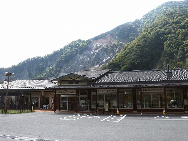 国道152号線に出たら右折するとすぐに大鹿村役場がある。さらに奥に進むと「道の駅 歌舞伎の里大鹿」が見えてくる。昭和36年のいわゆる三六災害で崩れたという大西山を背に控えた瀟洒な建物が出迎えてくれる。
