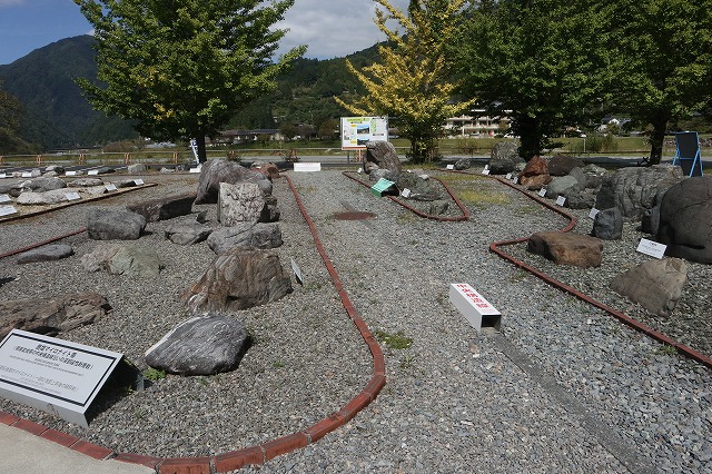 大鹿村は中央構造線が通っている村としても有名だ。この道の駅からさらに奥に進むと中央構造線博物館がある。その庭ではまさにその境目を目視することができる。
