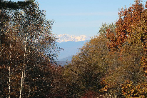 原村 PHOTO DIARY 八ヶ岳冠雪 2025.11.08 11月に入って八ヶ岳山頂は初冠雪。その後だんだん溶けてきていますが、木々の合間から覗く阿弥陀岳にはまだその痕跡が残っています。 今週は気持ちの良い秋晴れが続いていて、高原の別荘地からの眺望は見事の一言。紅葉した森の向こうには蓼科山や車山がくっきり。 中央アルプスはすでに真っ白になりつつあります。